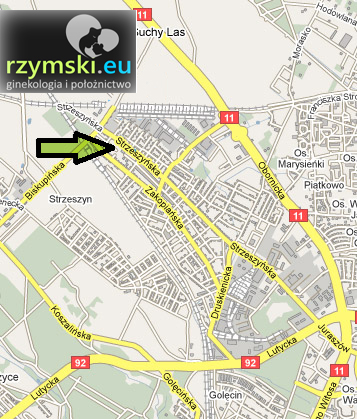 Dojazd z zachodu - droga krajowa 92 (z kierunku Pniewy, Skwierzyna, obwodnica S11) - ulicą Lutycką, na światłach przed Rondem Obornickim skręt w lewo